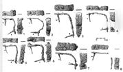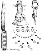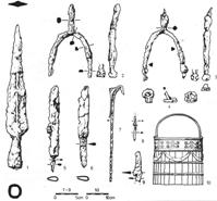 W obiekcie nr 69 odkryto, prócz długiego żelaznego noża z bogato zdobioną kościaną rękojeścią, o niewątpliwym charakterze bojowym, także żelazny czekan. Pochówek kupca zajmującego wyjątkową pozycję w strukturze ówczesnego społeczeństwa, oprócz pary ościeni, 6 haczyków do wędek, 2 szydeł, nożyc, 3 noży, sprzączki do pasa, wiadra (wszystkie przedmioty z żelaza), brązowego okucia pasa i 2 osełek kamiennych, dostarczył również unikatowych zestawów przedmiotów służących do odmierzania kruszcu, tj. ręcznej wagi składanej wraz z zestawem 19 odważników. Do tej grupy należy również zaliczyć przynajmniej 3 dalsze pochówki zawierające srebrne monety. Łącznie na cmentarzysku w Sowinkach odkryto 250 tzw. zabytków wydzielonych. Zabytki podzielono na 3 grupy: I. przedmioty reprezentujące części stroju i ozdoby: kabłączki skroniowe, paciorki szklane, bursztynowe i z kamieni półszlachetnych, pierścionki, wisiorki, sprzączki do pasa; II. przedmioty codziennego użytku: noże z pochewkami, wiadra, osełki, krzesiwa, nożyce, szydła, naczynia gliniane; do tej grupy zaliczono również przedmioty o charakterze specjalnym, jak waga składana, odważniki do wagi, okucia i gwoździe do trumny oraz monety; III. uzbrojenie: groty włóczni, groty strzał, czekany, ostrogi, sprzączki do ostróg. Wstępnie chronologię cmentarzyska w Sowinkach ustalono na przełom X i XI po XI wiek włącznie. Na podstawie odkrytych 4 monet oraz dużej liczby kabłączków skroniowych typu 1 i 3 o średnicy około 1 cm, jak również ostróg, czekana, grotu włóczni, wisiorka dzwoneczkowatego, a także niektórych noży można z dużym prawdopodobieństwem uściślić datowanie większości grobów do 1 połowy XI w. Z kolei przynajmniej do 2 połowy XI i 1 połowy XII w. można odnieść nieliczną wprawdzie część kabłączków o esowatych uszkach i średnicy ponad 3 cm. - opracował B. Kuik na podstawie publikacji: A.Krzeszowski: Wstępne wyniki badań archeologicznych na wczesnośredniowiecznym cmentarzysku szkieletowym z X/XI-XI w. w miejscowości Sowinki, gm. Mosina, woj. poznańskie, stanowisko 23a - Wielkopolskie Sprawozdania Archeologiczne Poznań1992 » zobacz pełną wersję dokumentu |